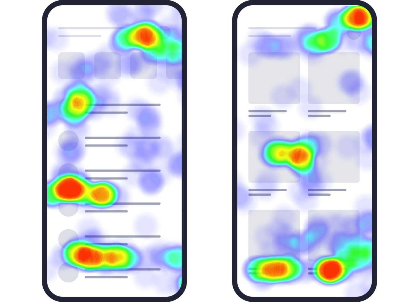 Heatmaps pour visualiser les zones les plus cliquées, celles ignorées et détecter les clics de colère révélant des frustrations.